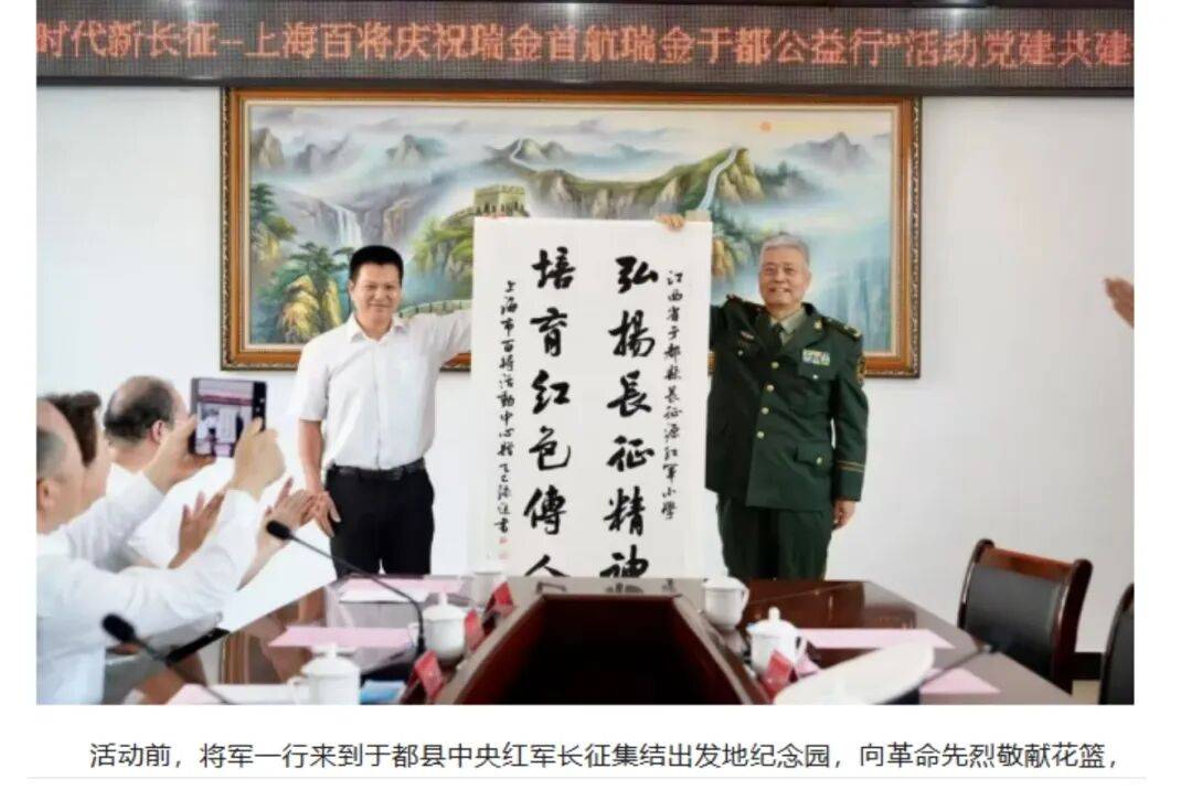 为庆祝上海至瑞金航线正式通航,深化沪赣两地情感联结与社会公益合作,2025年9月28日至30日,由赣州市人民政府驻上海联络处牵头,联合上海市百将公益活动中心等多家单位共同主办了“新时代新长征—上海百将庆祝瑞金首航瑞金于都公益行”活动。在长三角(上海)赣州商会、上海市瑞金商会的全程参与、积极支持下,该项活动取得圆满成功。